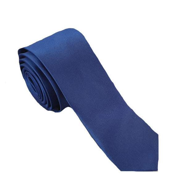 Cobalt Blue Skinny Polyester Necktie - Men's