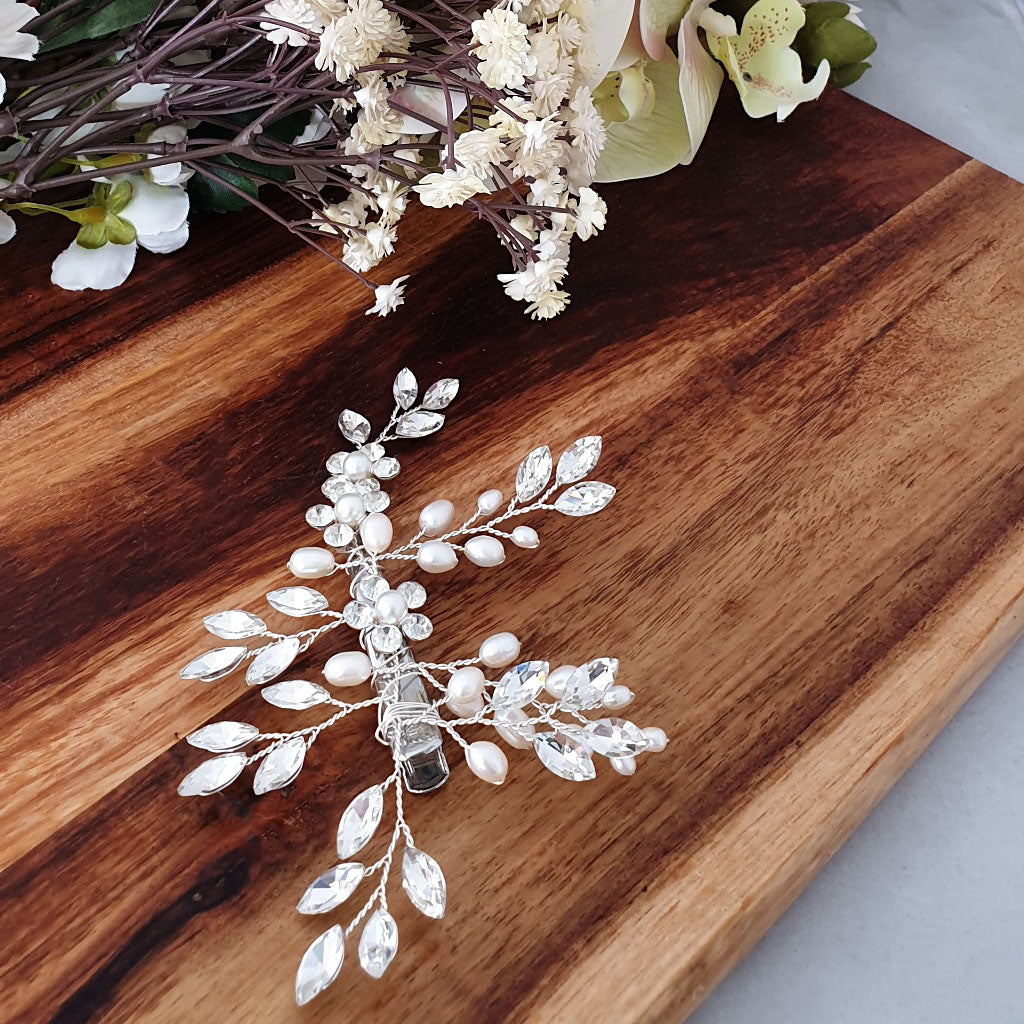 Hair Clip with Clear Gems & Ivory Pearl Beads