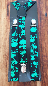 Navy Blue & White Stripe Wide Strap Suspenders - Mens