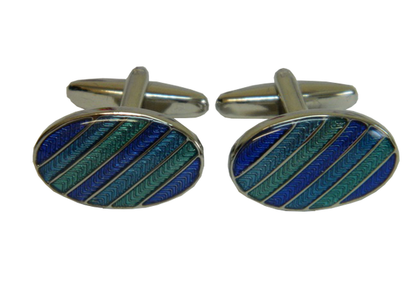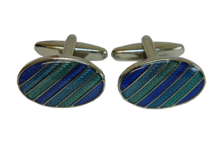 Oval Blue and Green Striped Cufflinks