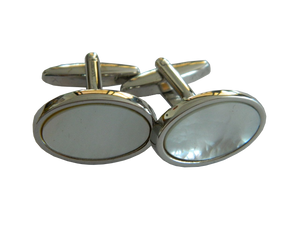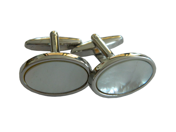 Oval Mother of Pearl Silver Coloured Cufflinks