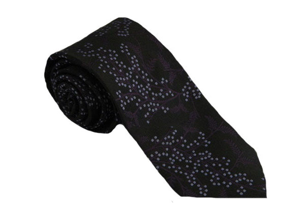 Selway Black with Purple Floral Polyester Necktie - Men's